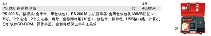 喜利得PS200钢筋扫描仪 加固层核查时,需确认钢筋位置,保护层深度及钢筋直径 — 改变建筑物用途 — 工程质量监督验收 — 改造前的实体检测 保护层厚度检测 — 工程质量验收 — 施工质量监督 — 改建时大面积检测保护层厚度 避开钢筋,确定钢筋的分布 — 用于取芯或钻孔时,避免结构性的损坏 — 钻孔时,避免遇钢筋造成的钻头及机具的损伤,以延长机具及钻头寿命 专业 — 大面积图像扫描,钢筋分布会被转成真实直观的图像在主机上显示,同时还能显示出任意点的钢筋直径及保护层厚度 — 快速确定大面积范围内钢筋的位置及平均保护层厚度 — 快速扫描精度达±1mm — 数据可在电脑上储存、分析、也可以会打印出钢筋分布图像,分析报告及文本结果 方便实用 — 主机与扫描探头无线连接,摆脱连线的束缚 — 一个主机可同时配备多个探头,以满足多个工程需求 — 大容量电池,单次充电,持续操作时间长达8小时 — 可以记录语音信息 — 配备了中文版软件及的钢筋标准,增加了检测的准确性及实用性 大容量 — 大容量图像存储空间,可使用MMC及SD记忆卡大至1GB(随机附赠128MB记忆卡) 耐用 — 机身采用工程塑料与软质橡胶,坚固耐用,防水防尘及防撞击,便于把握不易滑落
