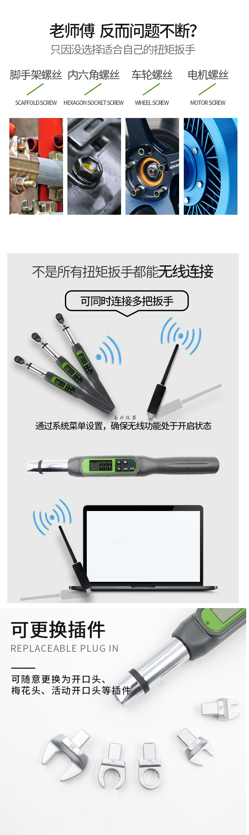 AWJCW-135A无线可换头数显扭矩扳手产品描述: